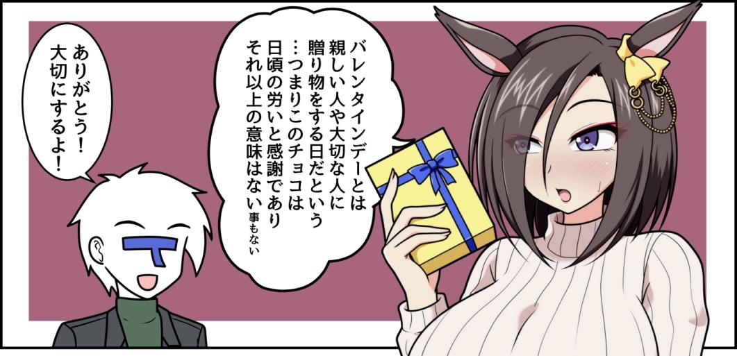 【ウマ娘】エアグルーヴのバレンタイン 2025年02月17日 カテゴリ:エアグルーヴ スポンサードリンク エアグルーヴのバレンタイン pic.twitter.com/y3ZaAK7Ovp— イズミ (@izumi_p) February 16, 2025 タグ :#イズミ スポンサードリンク 「エアグルーヴ」カテゴリの最新記事 コメントする コメントフォーム 名前 コメント 記事の評価 リセット リセット 顔 星 情報を記憶 コメントを投稿する  【ウマ娘】カンノーリは、日常と共に。【ウマ娘】4コマ「ライツ博士とプラモサティ」