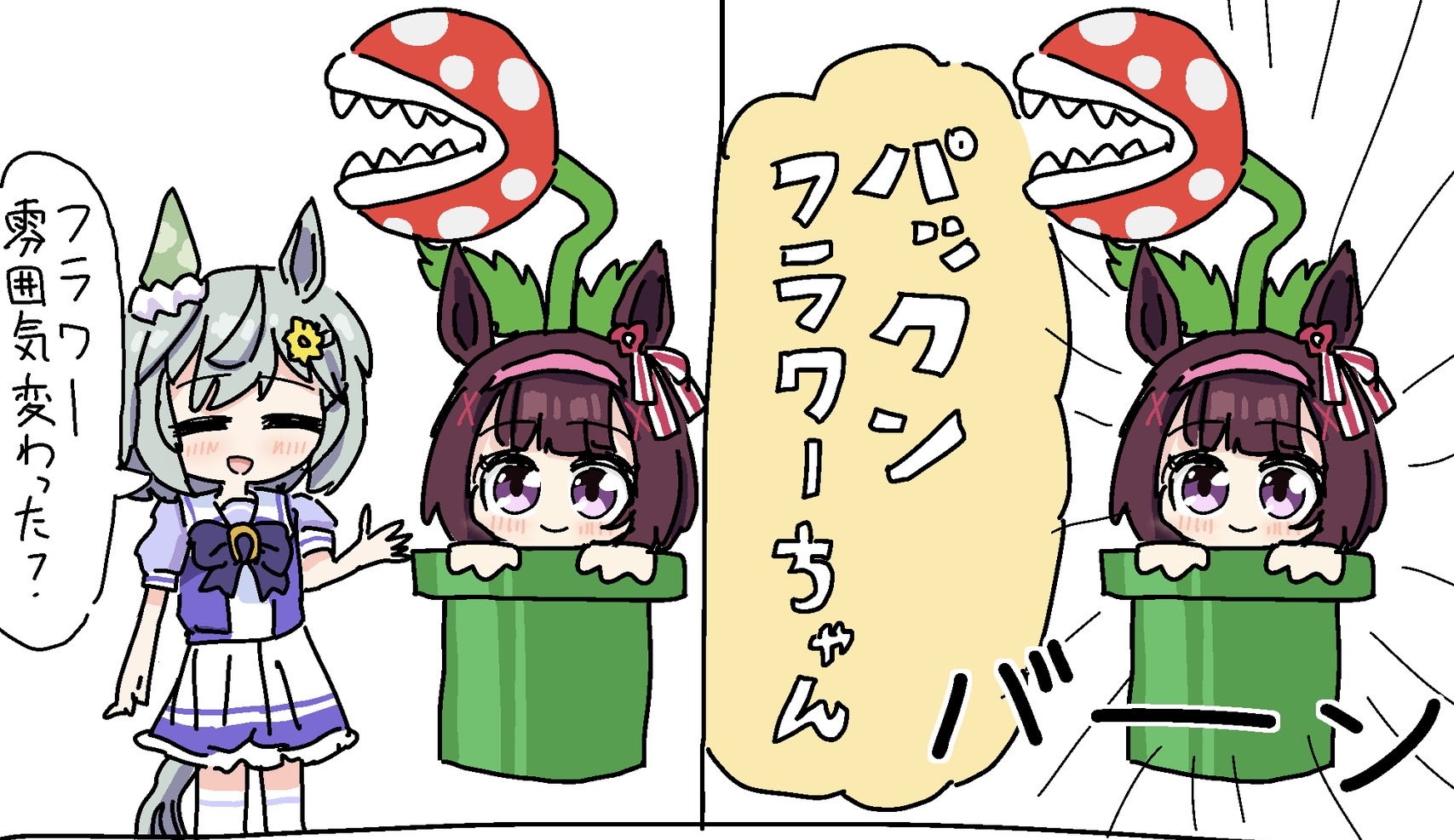 【ウマ娘】パックンフラワーちゃん 2025年05月13日 カテゴリ:ニシノフラワー スポンサードリンク パックンフラワーちゃん#ウマ娘プリティーダービー pic.twitter.com/RQKQiRm0BY— 記憶する電球 (@kiokusuru_denky) May 12, 2025 タグ :#記憶する電球 スポンサードリンク 「ニシノフラワー」カテゴリの最新記事 コメントする コメントフォーム 名前 コメント 記事の評価 リセット リセット 顔 星 情報を記憶 コメントを投稿する  【ウマ娘】疲れ気味のトレーナーを膝枕するラインクラフト【ウマ娘】4コマ「安心感」