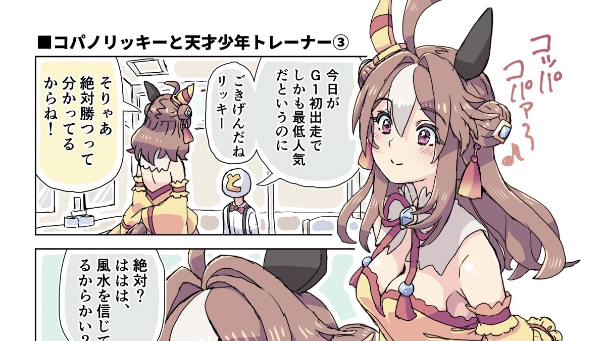 【ウマ娘】コパノリッキーと天才少年トレーナー③ 2025年11月10日 カテゴリ:コパノリッキー スポンサードリンク コパノリッキーと天才少年トレーナー③G1初出走 pic.twitter.com/fZ8D0bGWD8— ホーミング@C107 1日目東F-48a (@homing01) November 9, 2025 タグ :#ホーミング スポンサードリンク 「コパノリッキー」カテゴリの最新記事 コメントする コメントフォーム 名前 コメント 記事の評価 リセット リセット 顔 星 情報を記憶 コメントを投稿する  【ウマ娘】トレーナーと暖まるジェンティルさん【ウマ娘】衝撃の秘密を知ってしまったトウカイテイオー