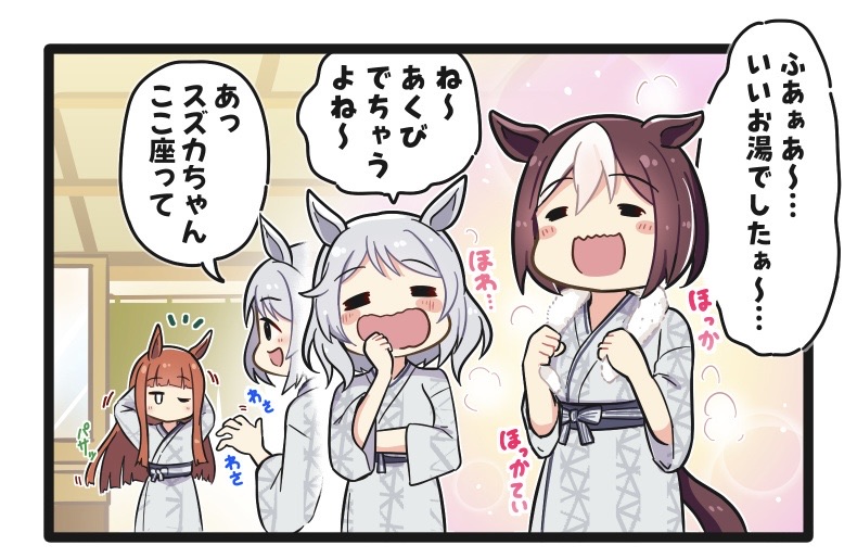 【ウマ娘】4コマ「いつもの湯上りスペちゃん」 2025年11月17日 カテゴリ:スペシャルウィーク スポンサードリンク いつもの湯上りスペちゃんの4コマ pic.twitter.com/ptRIkQ4p60— 二樹タケ@Skeb募集中 (@tk_nkntr) November 15, 2025 タグ :#二樹タケ スポンサードリンク 「スペシャルウィーク」カテゴリの最新記事 コメントする コメントフォーム 名前 コメント 記事の評価 リセット リセット 顔 星 情報を記憶 コメントを投稿する  【ウマ娘】スキップ高速化が速すぎて最後まで言い切れない賢さサポカマック【ウマ娘】発想の転換で貴婦人のパンチ力を測るトレーナー